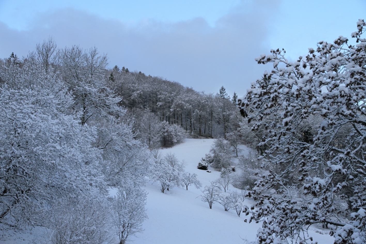 Ce matin, le temps s’est radouci, le gel ne mord plus. Un flocon virevolte sous un ciel bas, puis un autre et un autre encore. La terre s’enfarine dans un silence minéral. Les essaims se font légion. Le paysage s’estompe et se confond progressivement avec le ciel, rendant perceptible l’infini. Mais bientôt, le vallon se lira en noir-blanc sous le ciel redevenu bleu. C’est l’hiver; les arbres se reposent et rassemblent des forces nouvelles dans le secret de la blancheur.