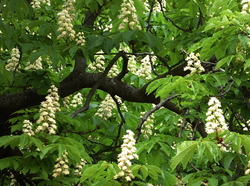 Comme c’est beau, un châtaignier en fleurs, on dirait presque un chandelier. Nyons (Drôme), avril 2016. Texte et photo Erling Mandelmann.