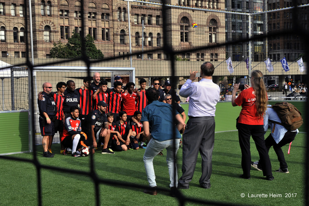 City Hall de Toronto, octobre 2017. Immortalisation des équipes après un match amical. Photo Laurette Heim