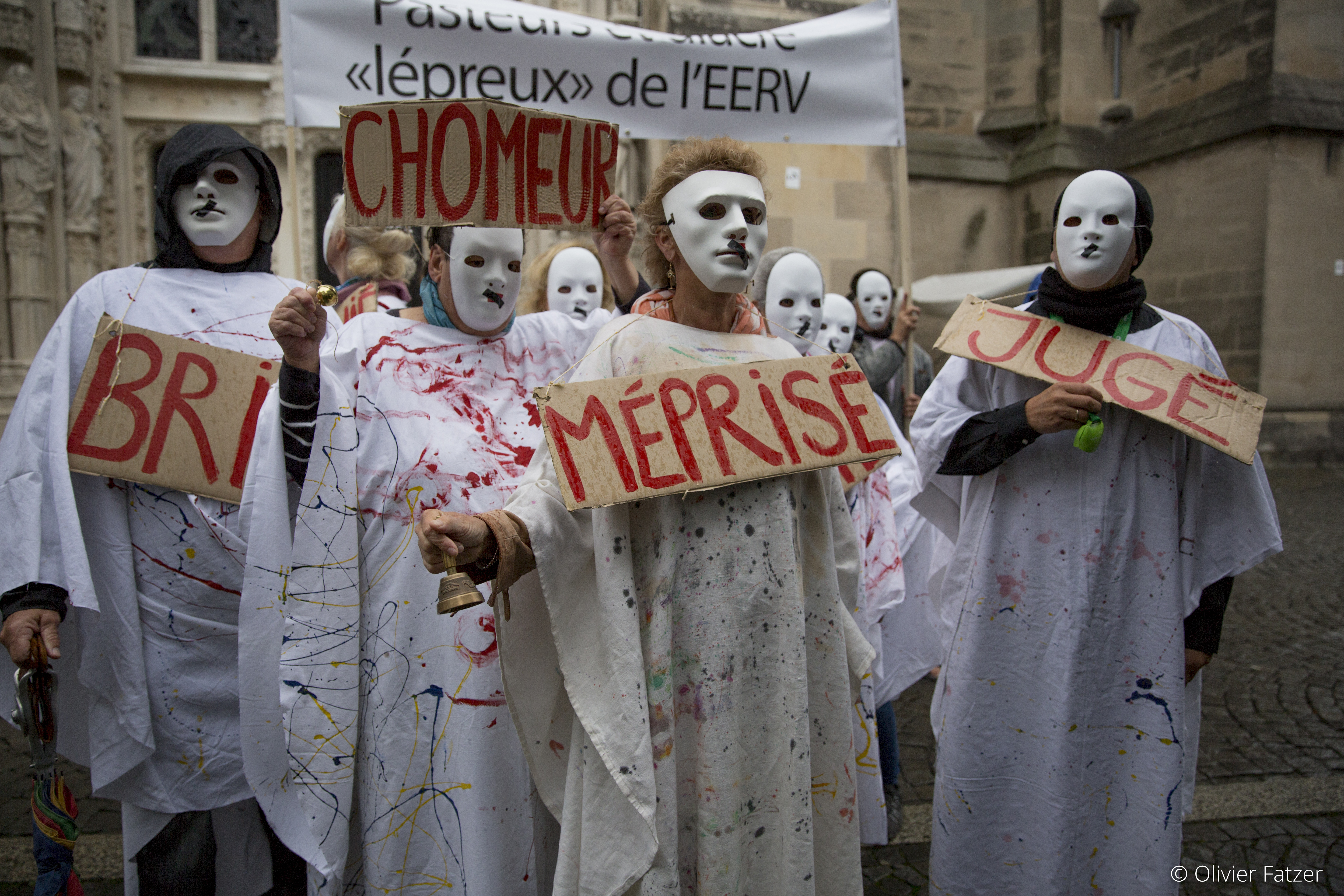 Photo DR: manifestation en faveur des pasteurs licenciés devant la cathédrale de Lausanne, le 2 septembre 2017.