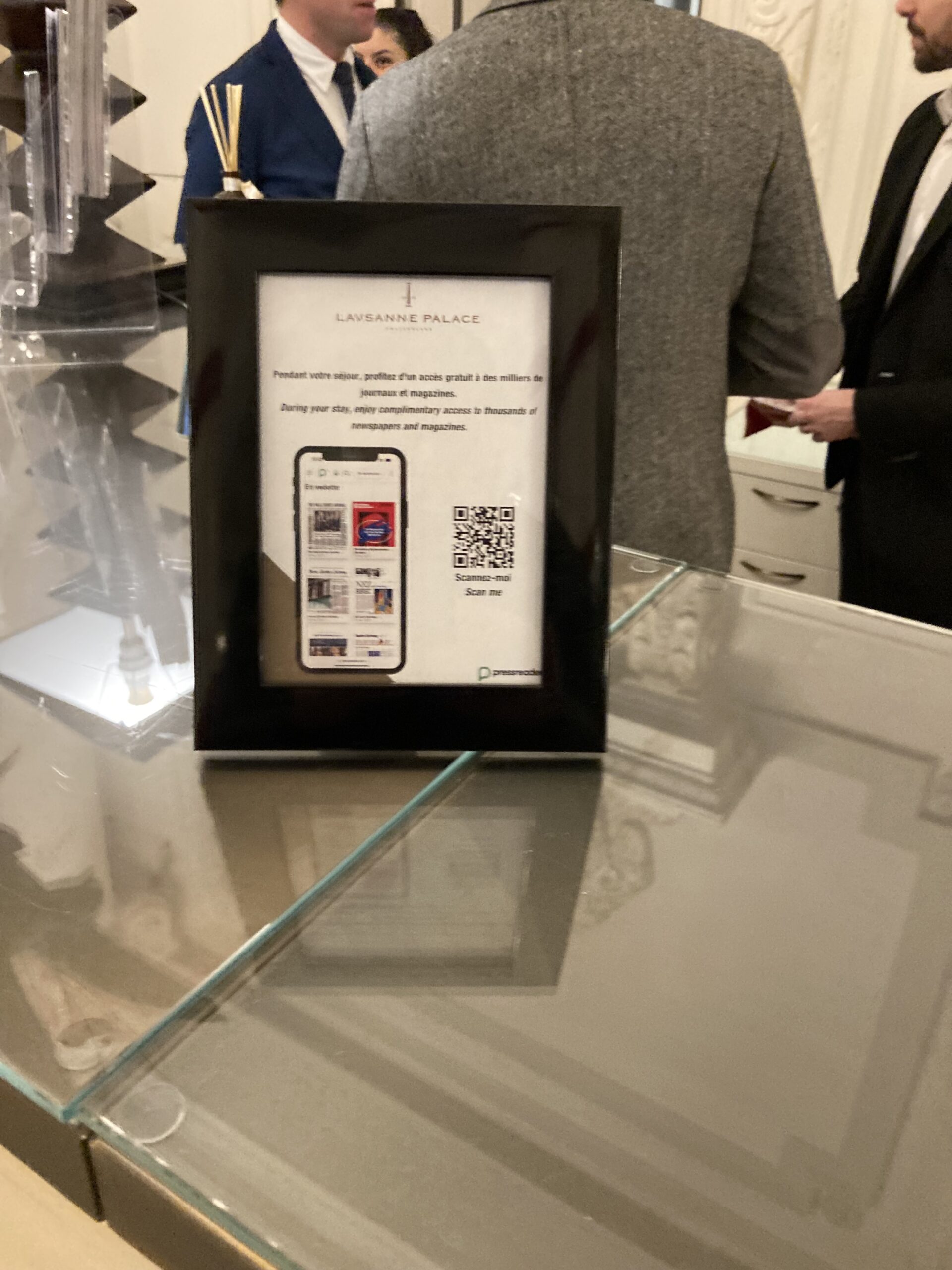 Les clients du Lausanne-Palace ne peuvent plus lire et froisser tranquillement les pages de leur journal préféré, confortablement installés dans un fauteuil cossu. Pour ce faire, ils devront s’adresser à la réception et requérir une tablette. Une décision de la direction. Moyennant un mot de passe, ils auront accès au sésame précieux, une application leur ouvrira les portes de l’information universelle. On n’arrête pas le progrès.