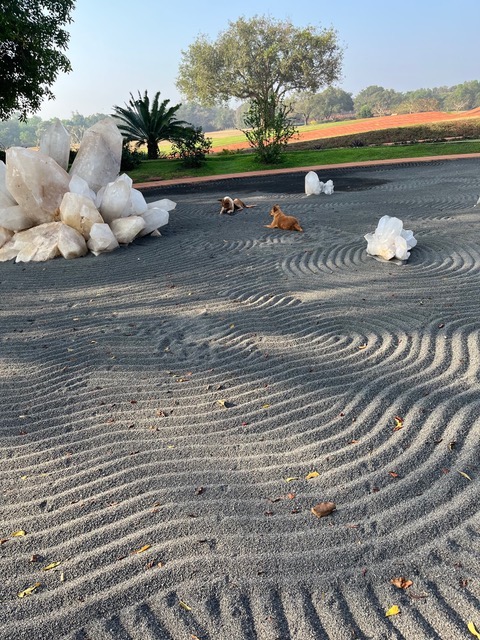 Pourtant, la beauté des détails, le sourire des enfants dont j’envie l’insouciance, une vache entrant dans un restaurant et gentiment redirigée vers la sortie, une noix de coco tombée juste à côté d’un cycliste, le parfum violent d’une champaca, les rouleaux de l’océan tout proche, une guirlande de fleurs fraîchement déposées sur la petite statue de Ganesh, la divinité rieuse et facétieuse, favorite des Indiens du Sud, un jardin zen… complètement défraîchi par les jeux de deux chiens fous, un troupeau de vaches avec leur veau installé pour la nuit au milieu de la route, encore gorgée de la chaleur de la journées, un vieil homme qui m’explique, dans un anglais rocailleux, la magie de certaines fleurs… L’Inde au quotidien, c’est beaucoup pour elle que je reviens.