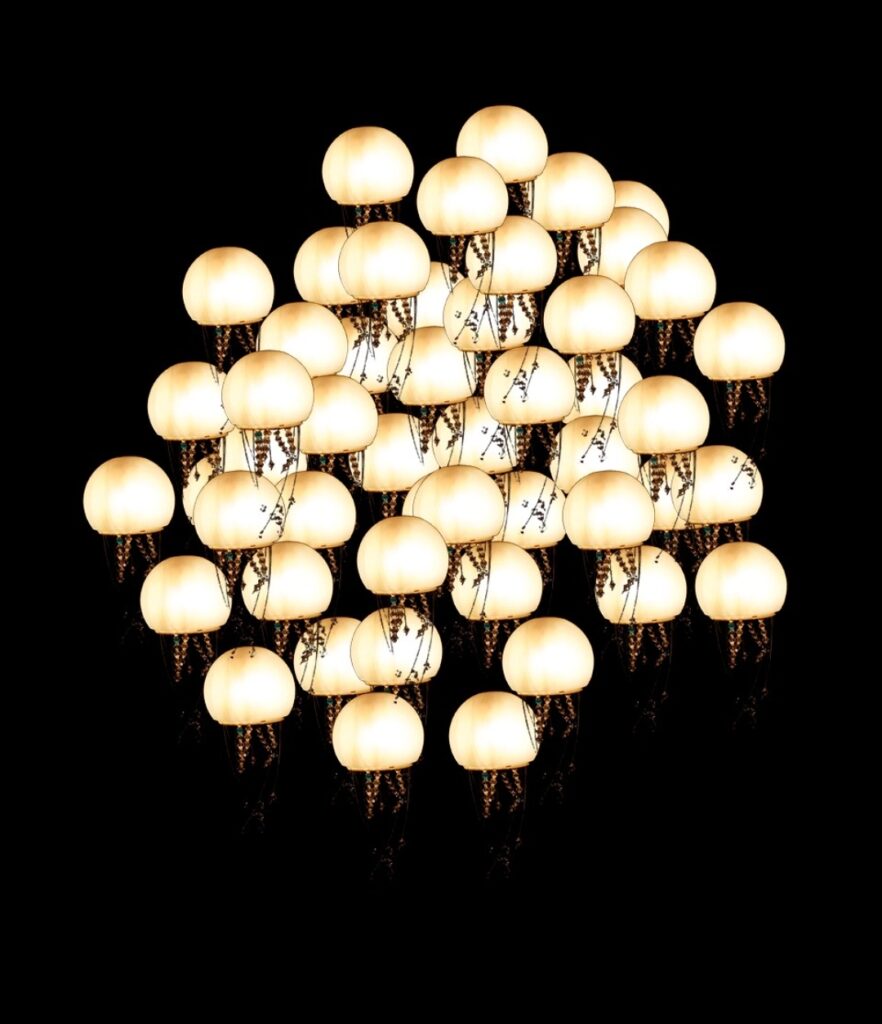 Réalisé en méduses, ce lustre sera exposé dans le hall de l’Hôtel de ville.