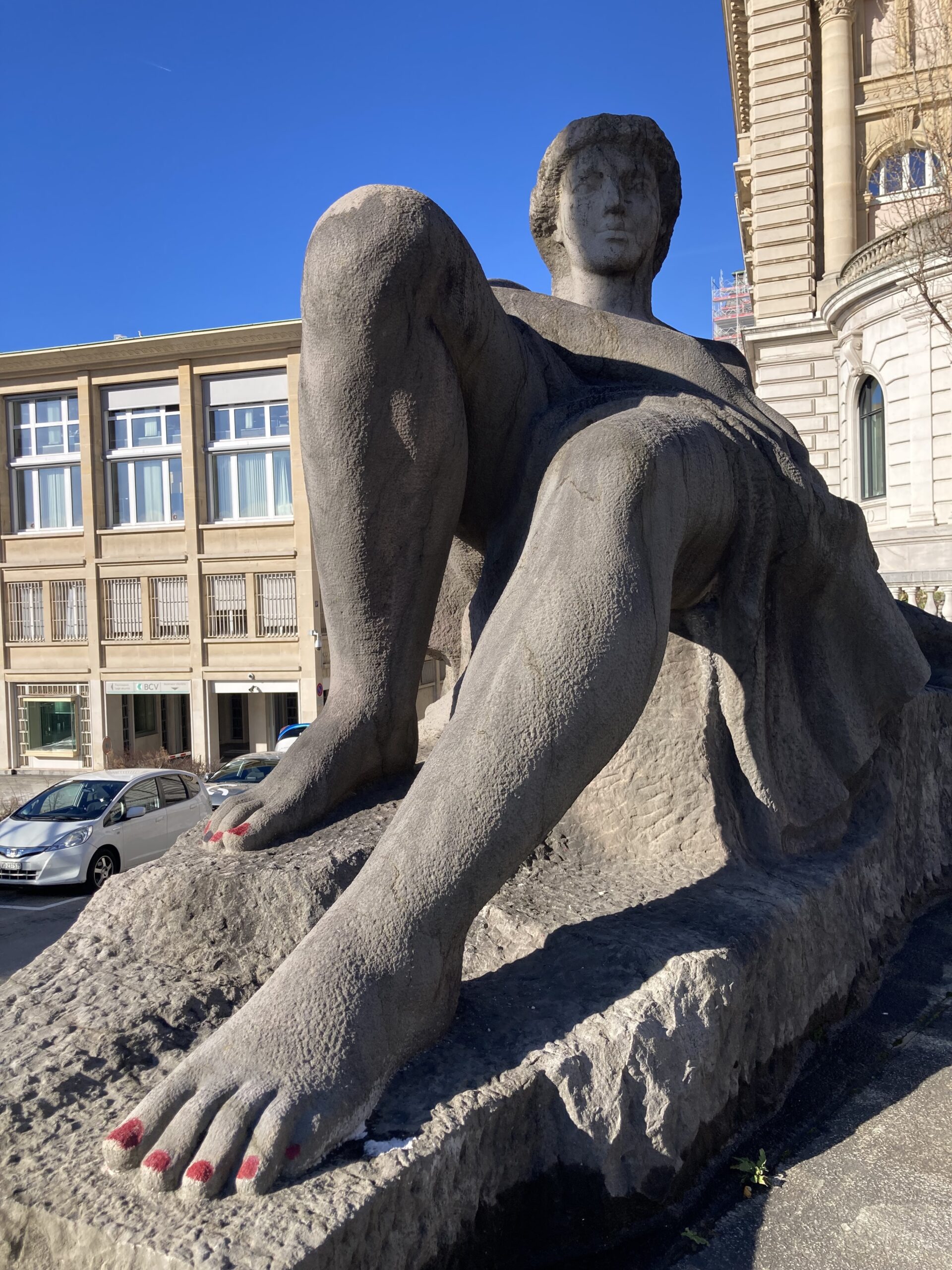 Coquette! Place St-François à Lausanne, l’ « Aurore » du sculpteur Milo Martin s’est refait une beauté. Photo le Médusé.