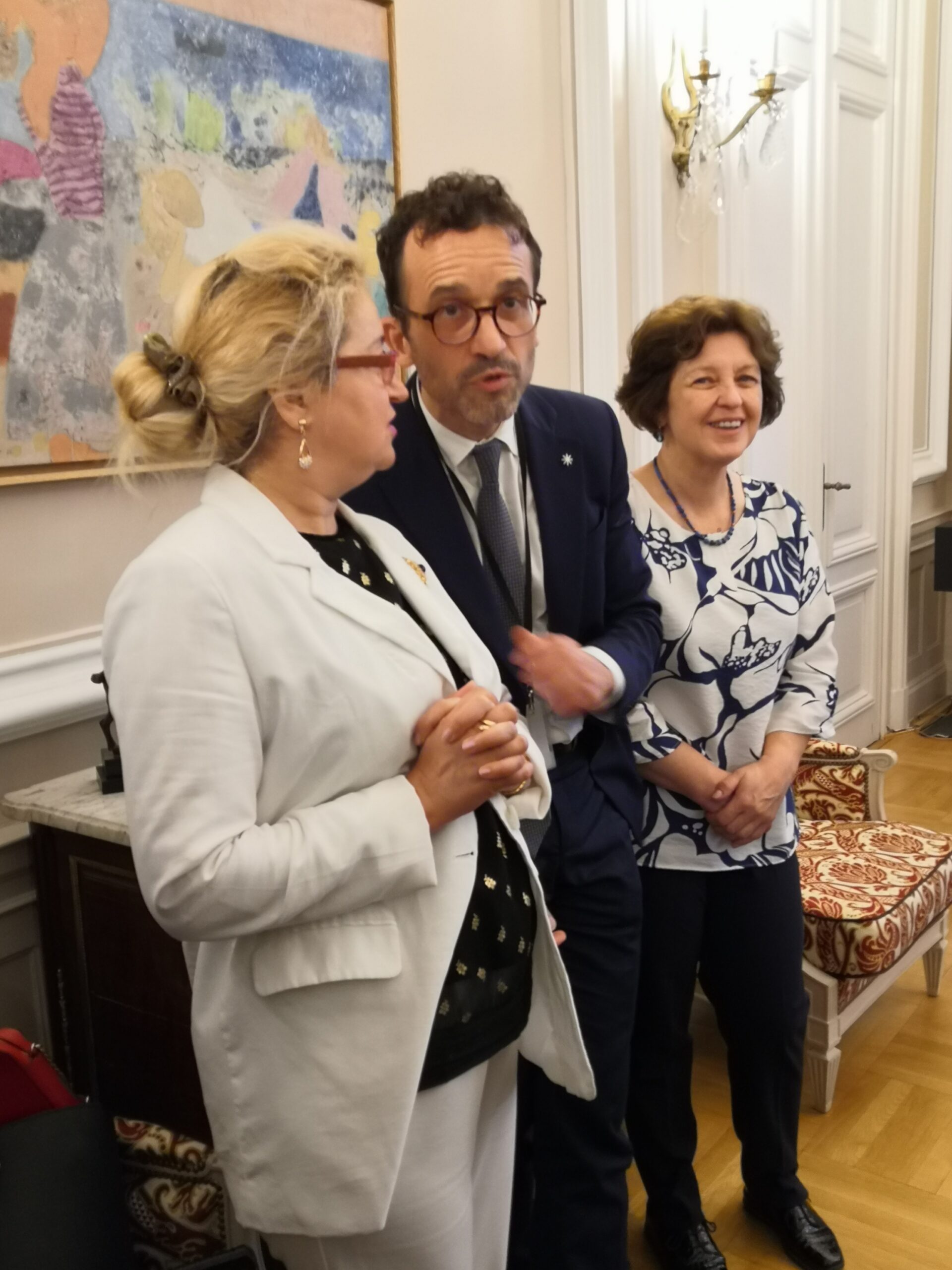Il faut savoir que l’Union internationale de la Presse francophone travaillait depuis avril 2023 à l’organisation de ce symposium sur les fausses informations. La secrétaire générale de l’organisation, l’Arménienne Zara Nazarian, se voulait la cheville ouvrière de l’événement. Pour diverses raisons, elle est entrée en conflit avec la très active présidente de la section roumaine de l’UPF, Daniela Coman (à droite sur notre photo DR, lors de la réunion de clôture du symposium à l’Ambassade de France), décidant bientôt de renoncer à sa participation au symposium, imitée en cela par le président international, le Sénégalais Madiambal Diagne. Le Bureau international de l’UPF, contrairement à celui de l’Organisation internationale de la francophonie (OIF), a décidé derechef de retirer l’UPF internationale des organisations patronnant l’événement. Le logo de l’UPF et toutes les références à l’Union internationale devaient être retirées des supports de communication. Jusqu’à Jean-Philippe Jutzi, président d’une section suisse de l’UPF forte d’une centaine de membres, invité à participer au symposium en qualité de vice-président de l’UPF pour l’Europe, qui se voyait contraint de n’intervenir officiellement ni à la cérémonie d’ouverture, ni à celle de clôture. Au final, un nombre important de participants d’Afrique subsaharienne initialement inscrits n’ont pas pu se rendre à Bucarest. La majorité des participants ont été les membres de la presse francophone actifs dans les Balkans, en Europe centrale et de l’est. Le groupe suisse était réduit à une « troïka » composée du président Jean-Philippe Jutzi, d’un journaliste sénégalais en poste à Genève et de l’auteur de ces lignes, venu en qualité d’observateur.