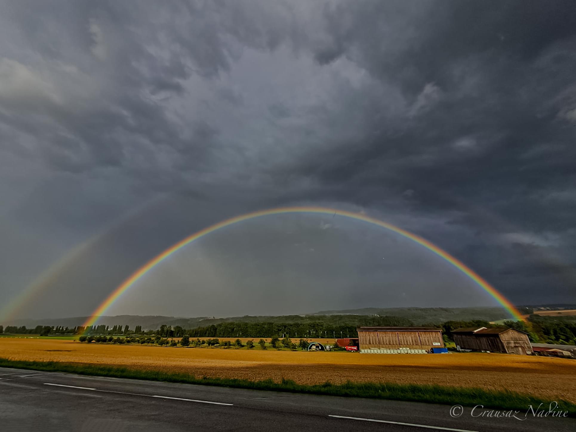 Coquetterie d’orage le 12 juillet 2024 à Villeneuve, dans la Broye fribourgeoise. Photo © Nadine Crausaz.