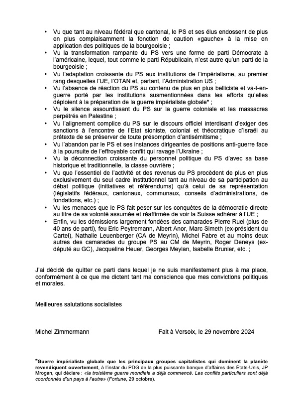 Elément remuant de la gauche genevoise, Michel Zimmermann claque la porte du parti socialiste genevois. On sentait le vent venir car le rebelle versoisien avait déjà fait la une de la presse régionale en mars 2020, annonçant alors sa démission du conseil municipal de Versoix. Dans sa lettre envoyée à ses camarades de parti, Zimmermann dénonce « le virage idéologique, de fait, largement amorcé par le PS en faveur de dogmes et doctrines de nature sociétale au détriment de son engagement au compte du combat social fondé sur les principes universalistes de la lutte des classes ». Un vrai de vrai, Micky!