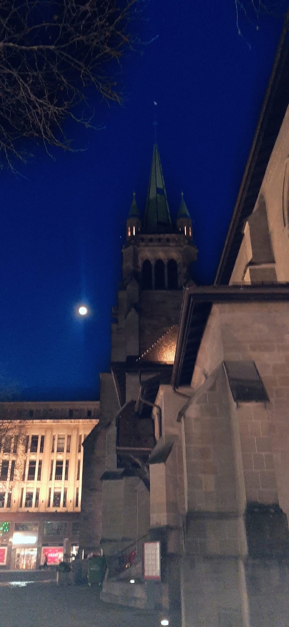 Pleine lune sur Saint-François à Lausanne, 13 janvier 2025. Photo ©2025 Roger Chanez