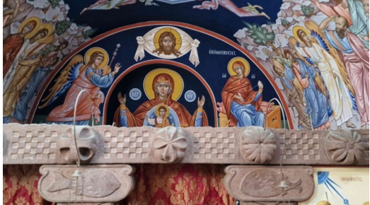 Le décor pictural illustre tous les moments importants de la vie de Jésus-Christ : l’Annonciation, Noël, le Baptême du Christ, la Transfiguration, les Rameaux, la Crucifixion, la Résurrection, l’Ascension, Pentecôte.