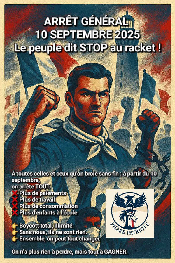 « L’appel à la mobilisation, qui veut mettre la France à l’arrêt (le 10 septembre) pour une durée illimitée, est diffusé par d’anciens Gilets jaunes et partagé par des relais de l’extrême droite. »