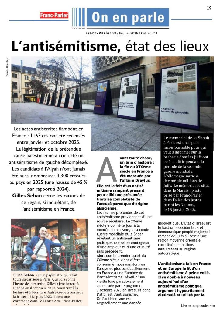 Les actes antisémites flambent en France : 1163 cas ont été recensés entre janvier et octobre 2025. La légitimation de la prétendue cause palestinienne a conforté un antisémitisme de gauche décomplexé. Les candidats à l’Alyah n’ont jamais été aussi nombreux : 3.300 retours au pays en 2025 (une hausse de 45 % par rapport à 2024). Psychiatre et écrivain, Gilles Seban ausculte ce grand malade qu’est la France en proie à un regain d’antisémitisme.