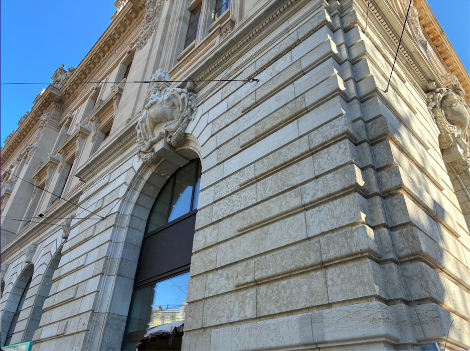 A Lausanne, l’Hôtel des Postes de Saint-François perd sa gangue de plastiques et d’échafaudages après plus de deux ans de travaux de rénovation complète. Photo @2026 infoméduse