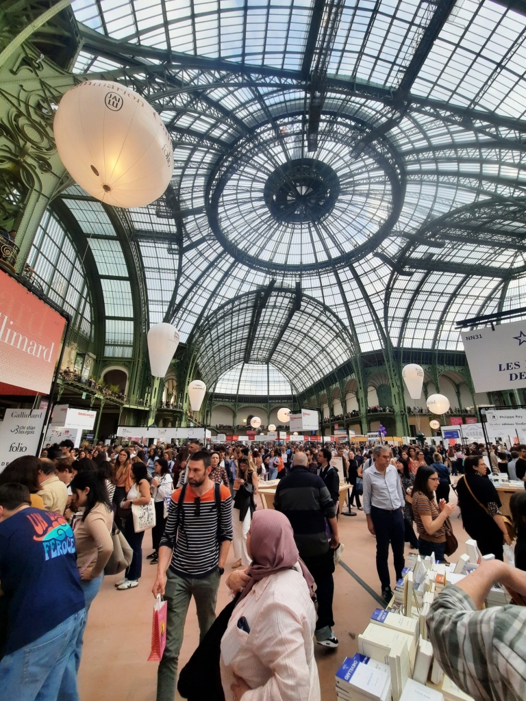Surprise de taille : cette perspective effroyable ne semble toutefois pas avoir suscité trop d’inquiétudes au sein de la communauté des maisons d’édition qui ont dressé leurs stands pendant trois jours (17 au 19 avril) à l’occasion du Festival du Livre. Sous l’immense verrière du Grand Palais, l’une des plus belles œuvres architecturales à Paris issues de l’art nouveau, s’était massée une foule joyeuse et plutôt optimiste. L’attrait pour la lecture et la littérature conserve toute sa vigueur dans l’Hexagone : le long de la colonnade extérieure du Grand Palais végétait une file d’attente d’au moins deux-cent mètres et l’ouverture des portes de faisait vraiment au compte-goutte.